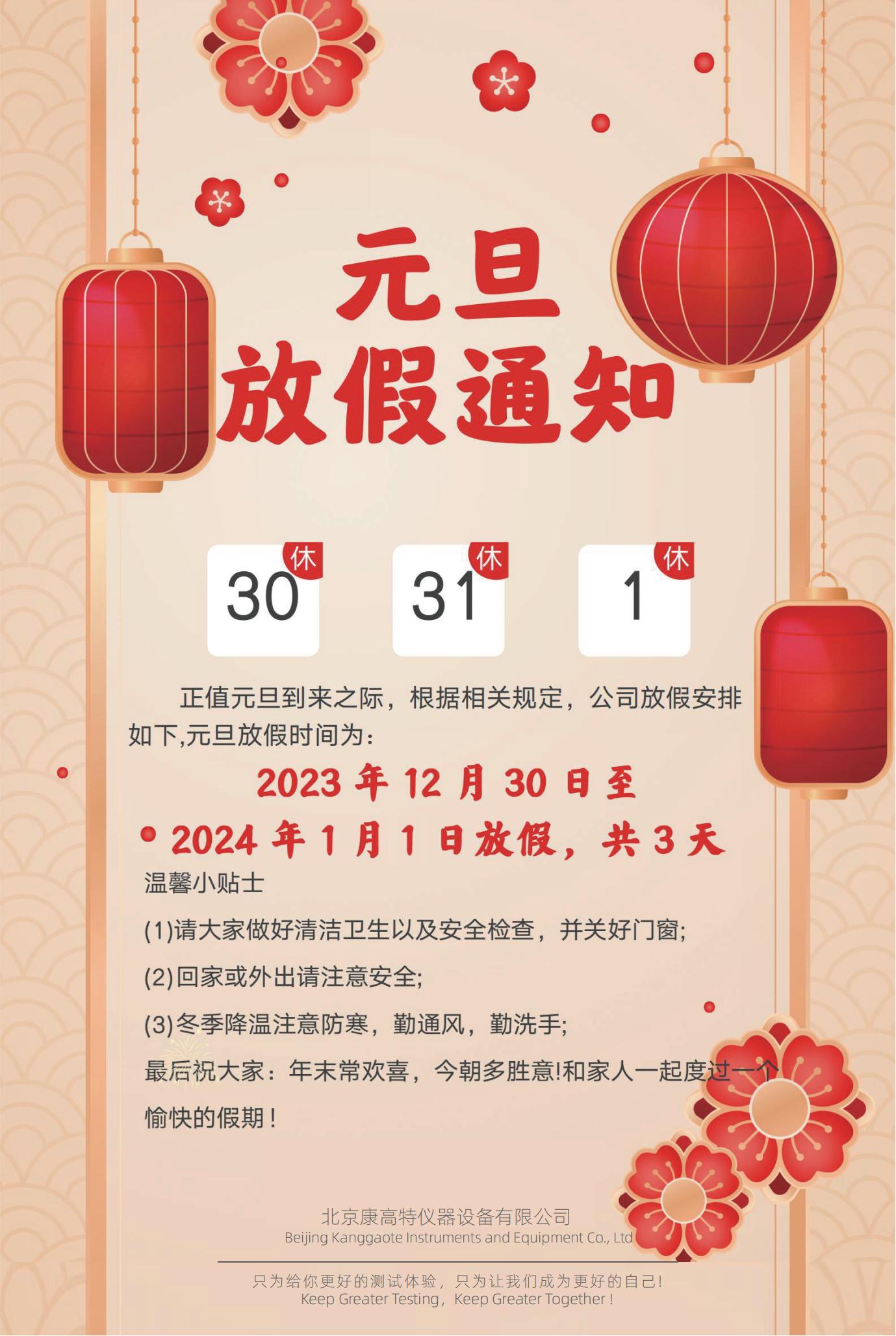 北京康高特儀器設備導讀:*3天,迎接2024。元旦即將來臨,提前祝大家新年快樂!